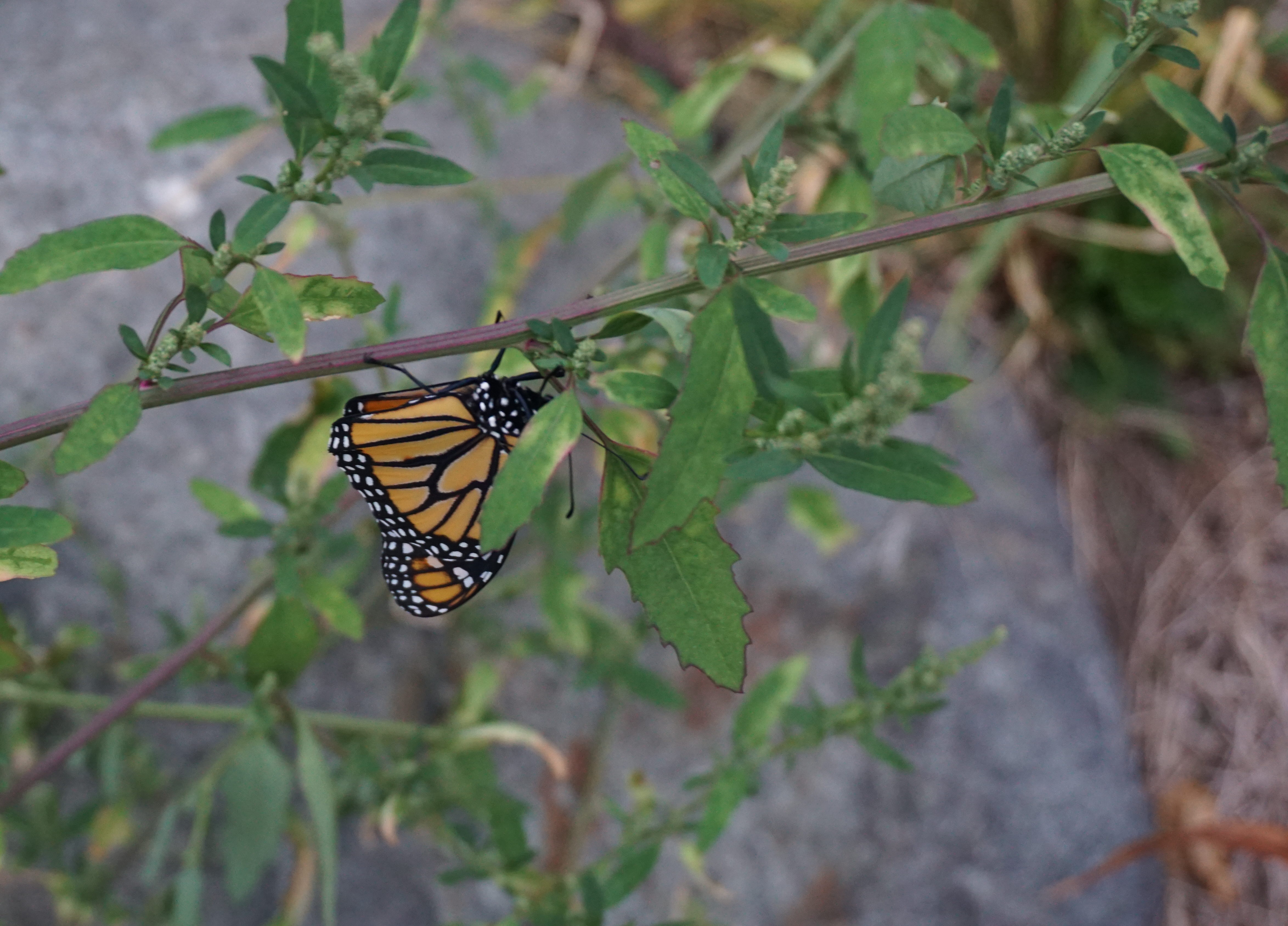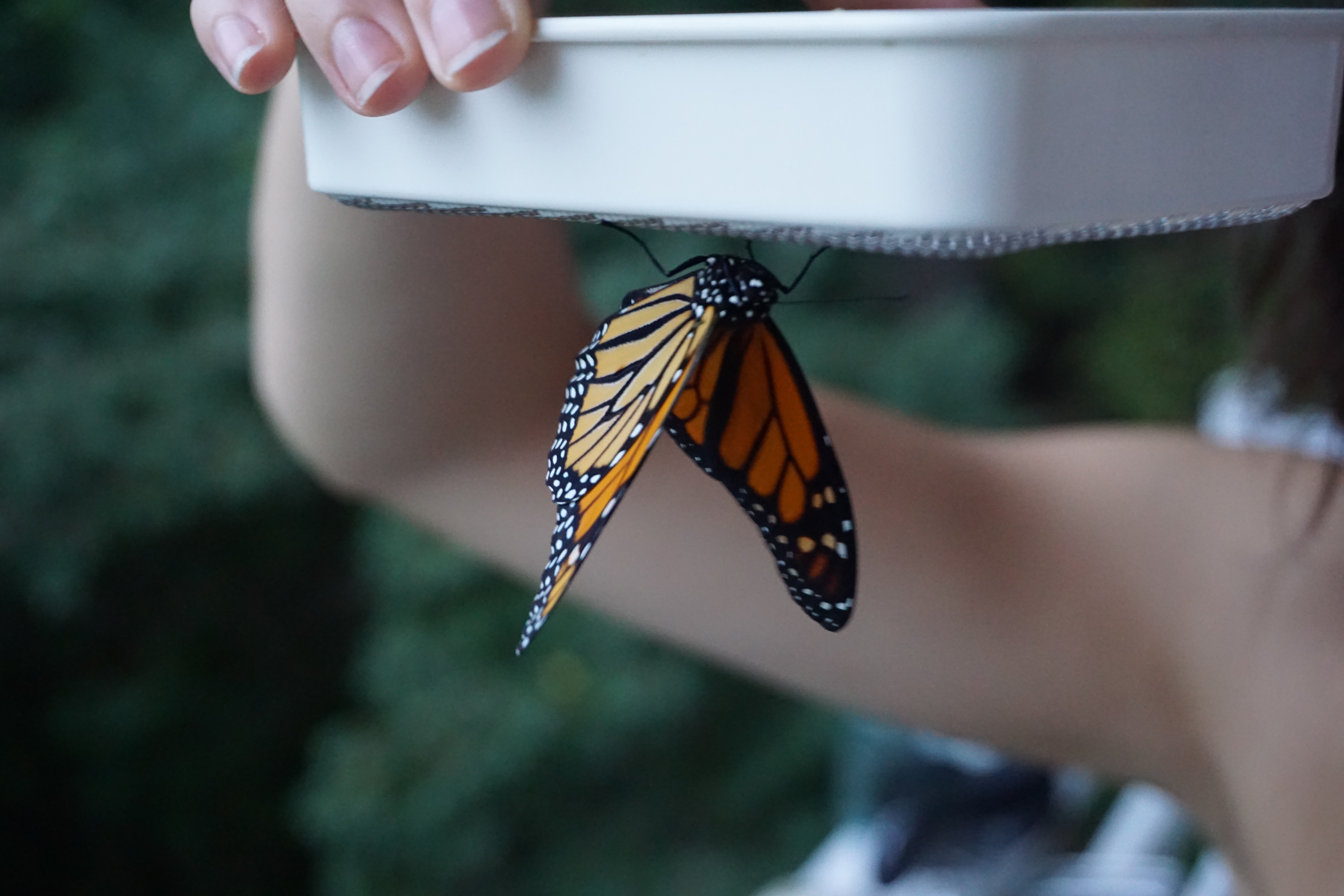9/17 - The monarchs began to hatch. Chrysalis black with wings, the first emerged in the early afternoon. Unfortunately, as can happen with any change in life (a reason to fear it, no doubt), complications arose. From what we could discern, it spent too much time attempting to break out, and its wings dried too soon. The second hatched in the middle of the night, as we woke up to find it hanging at the top of its jar. After some falls as it got used to having just a handful of feet, it sat drying its wings on a nearby bush. Storms eventually rolled through, but no signs that they stopped this Monarch from beginning the journey. Fly above the cars and below the birds, pleasant Mexico awaits you.